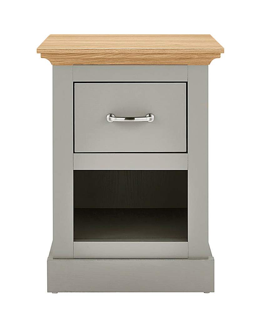 Bring an elegant country-style charm into your bedroom with the Ashford Living range. Choose between the oak-effect tops and contrasting wood-effect frame, or an oak-effect finish all over. Featuring a chunky plinth, this range is perfect to add a warm and homely feel to your space. Drawers are sat on easy-glide runners and feature stylish metal handles, with an open shelf at the bottom, perfect for displaying your magazines, ornaments or a plant.