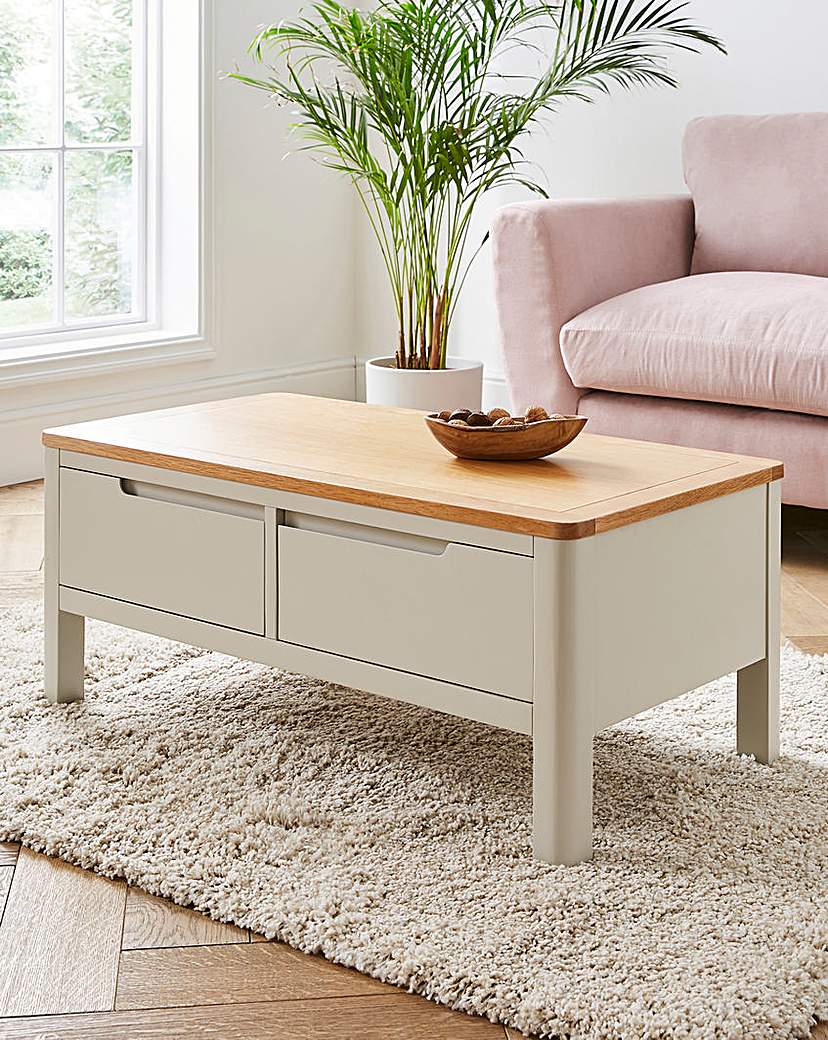 The Logan Two-Tone range, crafted from solid oak, is perfect for modern family homes. Characterised by its curved corners and recessed handles, this range is perfect for adding a retro theme to modern homes. Featuring a soft grey painted finish with oak tops, this Storage Coffee Table is stylish and practical, with drawers for all your additional storage needs.