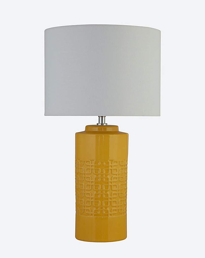 This ochre ceramic table lamp features a beautiful embossed ceramic base, and is ideal for any room. The oatmeal linen shade adds a neutral element, meaning that this will work with any decor colour. Bulb not included, but we recommend E27 GLS LED 10W.
